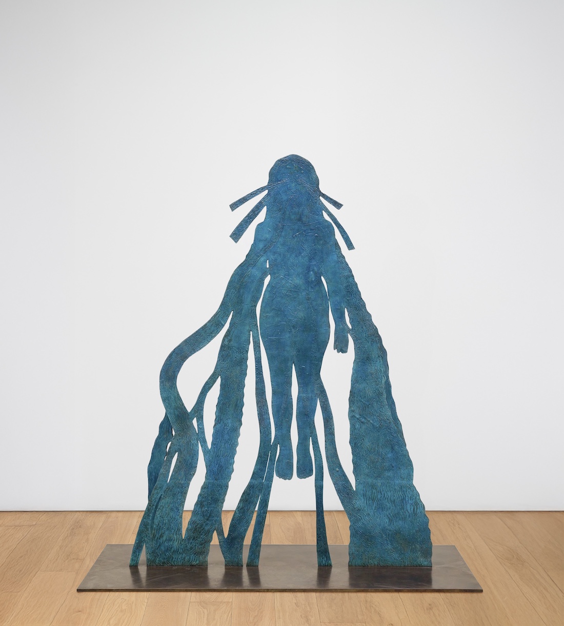 Among the highlights are Winter and Capricornus (both 2021), two monumental bronze sculptures that evoke the artist’s zodiac sign. These hybrid creatures, half goat and half fish, rise with an ambiguous energy, oscillating between defense and embrace.