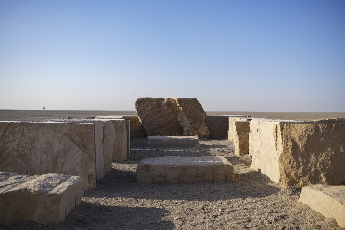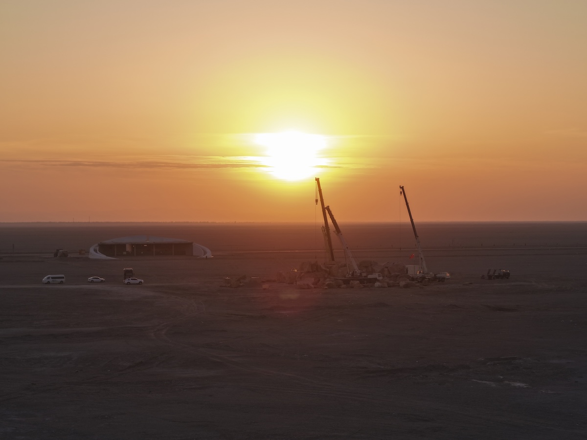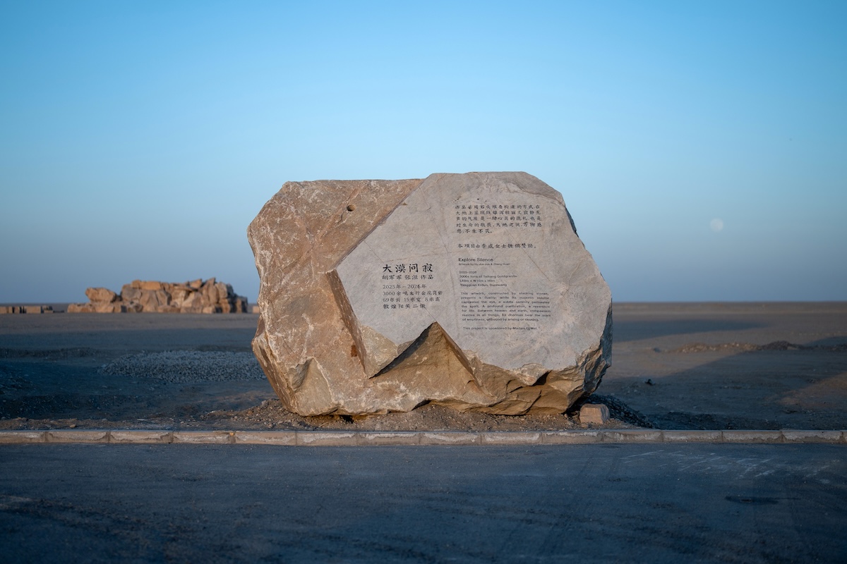 Within this landscape, Hu Jun Jun and Zhang Huan realized Explore Silence, a permanent land art installation composed of more than three thousand tons of granite transported from the Taihang Mountains across more than two thousand kilometers to the desert. Conceived by Hu Jun Jun as the principal creator, in collaboration with Zhang Huan, the work does not attempt to represent history, faith, or memory. Instead, it confronts them through matter itself. Rising from the sand as a monumental stone formation, Explore Silence rejects spectacle and narrative. Its scale feels geological. Its sense of time extends far beyond the human.